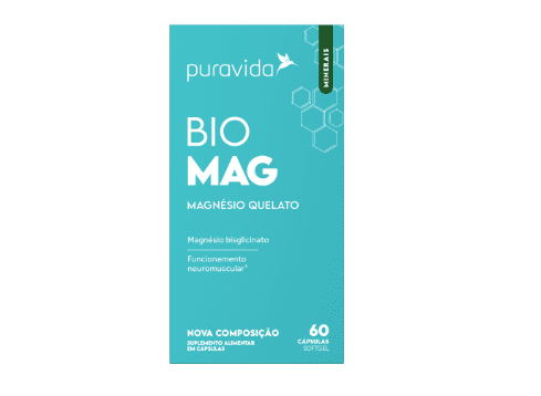 O Bio Mag da Puravida trz em sua composição o magnésio bisglicinato, que auxilia no funcionamento neuromuscular.