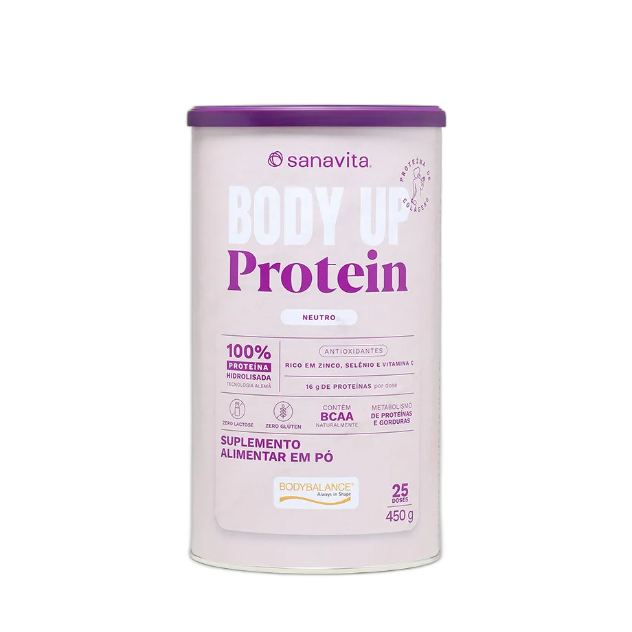 Body UP Protein é um suplemento proteico formulado com a exclusiva proteína hidrolisada de colágeno Bodybalance®.