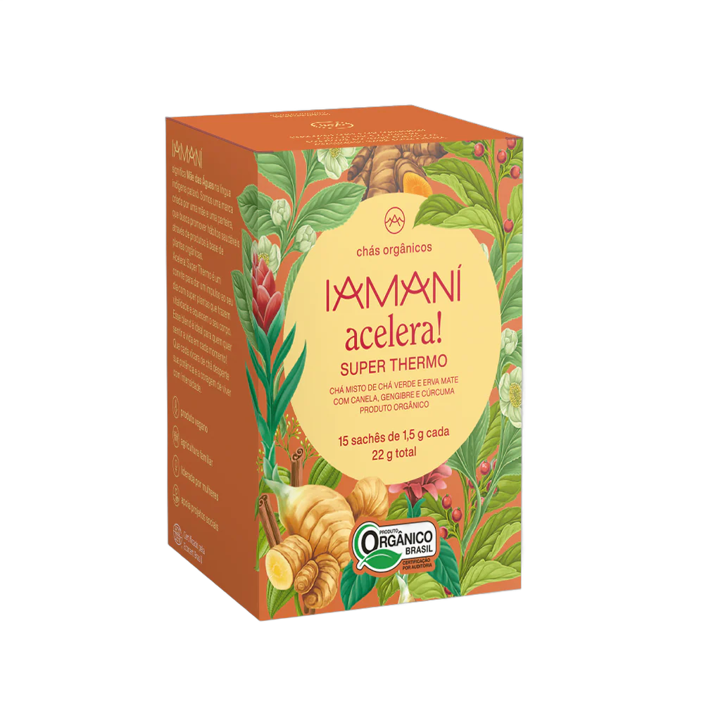 Ingredientes: Chá verde, mate, canela, gengibre e cúrcuma.