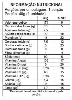Blend proteico (caseinato de cálcio, proteína concentrada de leite, proteína de soro do leite concentrada, proteína de soro do leite  isolada e colágeno hidrolisado), cobertura de chocolate branco, recheio cremoso sabor chocolate branco, óleo de palma (Elaeis guineenses), iogurte natural integral em pó, polidextrose, frutooligossacarídeos, Fiber 3® [Inulina – fibra da raiz da chicória, goma de acácia purificada e goma guar parcialmente hidrolisada], goma acácia, morango desidratado, vitaminas (acetato de retinol, colecalciferol, cloridrato de piridoxina, ácido fólico e cianocobalamina), minerais (sulfato de zinco, selenito de sódio e picolinato de cromo), aromatizantes, cloreto de sódio, edulcorantes sorbitol e maltitol, umectante glicerol, antiumectante fosfato tricálcico, emulsificante lecitina de girassol, conservantes sorbato de potássio e benzoato de sódio, antioxidante dl-alfa-tocoferol, corantes vermelho allura AC e carmins.