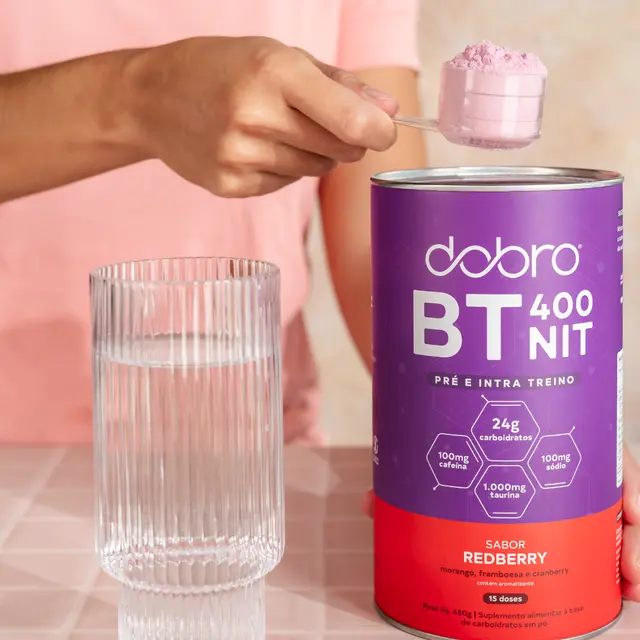 O BT 400 Nitrato Dobro é um suplemento energético em pó que combina nitrato natural da beterraba com carboidratos de rápida absorção e eletrólitos essenciais. Quando consumido antes do treino, o nitrato auxilia na vasodilatação natural, facilitando a distribuição de oxigênio e nutrientes. Já durante a atividade, oferece energia imediata e suporte à hidratação muscular.
