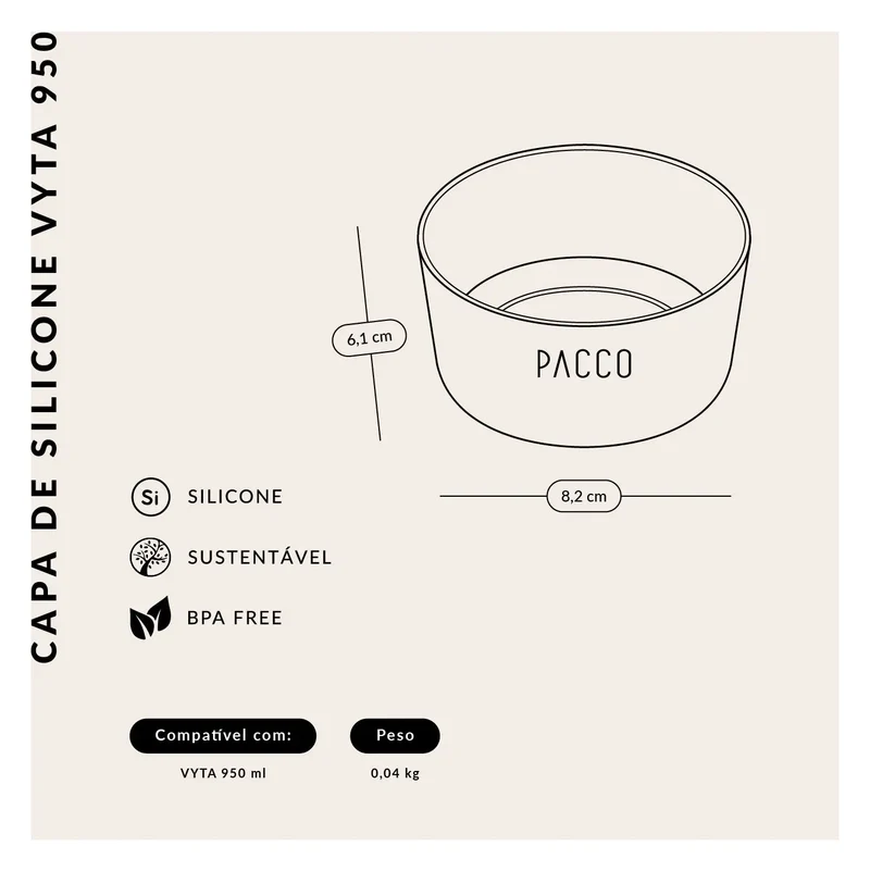 O silicone sustentável de alta qualidade garante durabilidade e resistência, já o design inovador destaca as características da VYTA.