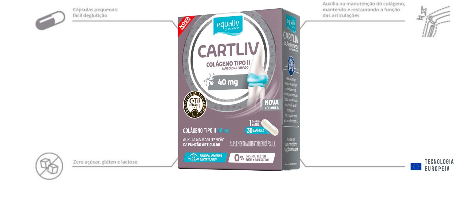 Equaliv CartLiv é um suplemento a base de colágeno tipo II não hidrolisado, que auxilia mantendo e restaurando a função das articulações.